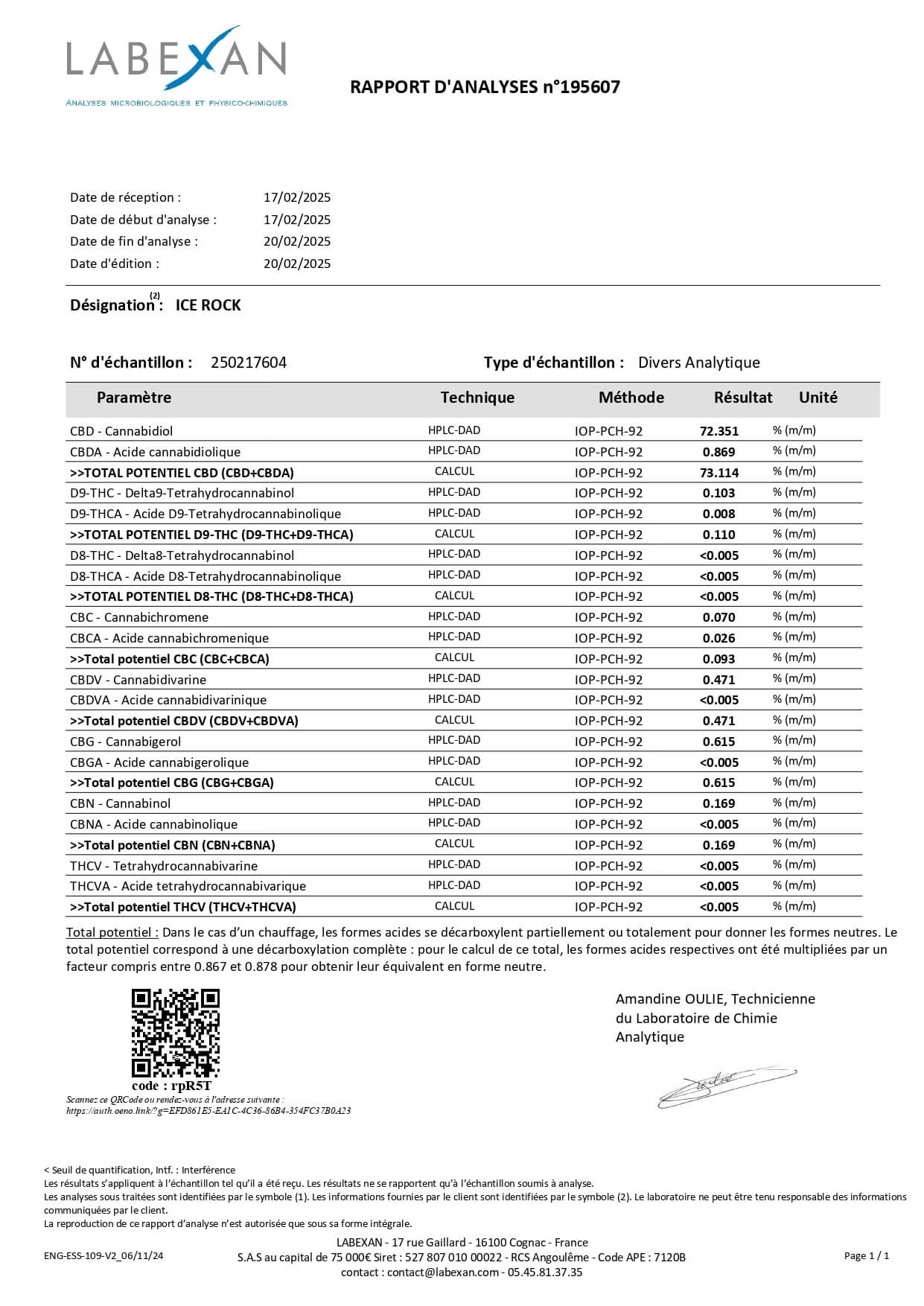 Concentration exceptionnelle en CBD : 73%